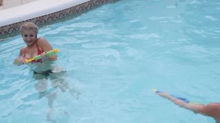 ¡Buenos amigos Amelia y Paige se divierten en la piscina juntos!