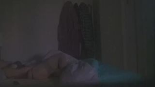 horny wife watching porn and fingering pussy on the bed. hidden cam