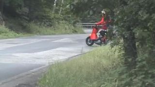 Cast: Katerina Sz. Weird things happen to me every once in a while. Let me tell you my story. We were driving to a great party that was starting soon in the countryside. On our way there, we stopped the car for a short while to smoke and take a leak. Out of nowhere appeared this hot blonde chick and said her bike got broken, so she needed help... Oh course I didn't mind helping, but for a certain reward. My pickup girl got me right and started stripping outdoors :) She showed me her cute naked boobs and ass. Then we had pick up sex on that broken red bike of hers