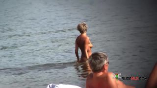 Exhibitionist Wifey Taunting Nude Beach Voyeurs Next To Spouse!