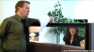 Betty is confronted by Danny who is dissatisfied with her quality of work on day one. The only reason she has this job is because he knows her family well, and he also knows how she is disciplined at home. Betty is taken OTK in the lobby of the office and spanked hard.