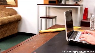 Mila is sent to be paddled for her excessive cleavage. She is bent over and spanked by The Principal after he is sent a photo from one of her teachers.