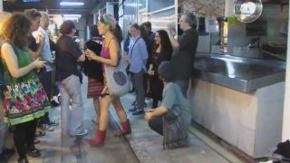 It was pretty darn odd to watch this street art performer but since Im into crazy chicks, I hanged on and filmed it all. That crazy bitch chanted some crap and got fully naked, revealing that there is actually a hot body under that hippie attire she was wearing. Crowd was shocked by public nudity.