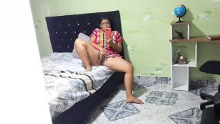 Horny glasses girl watching phone porn and fingering pussy till orgasm - Amateur with XFantasy.tv